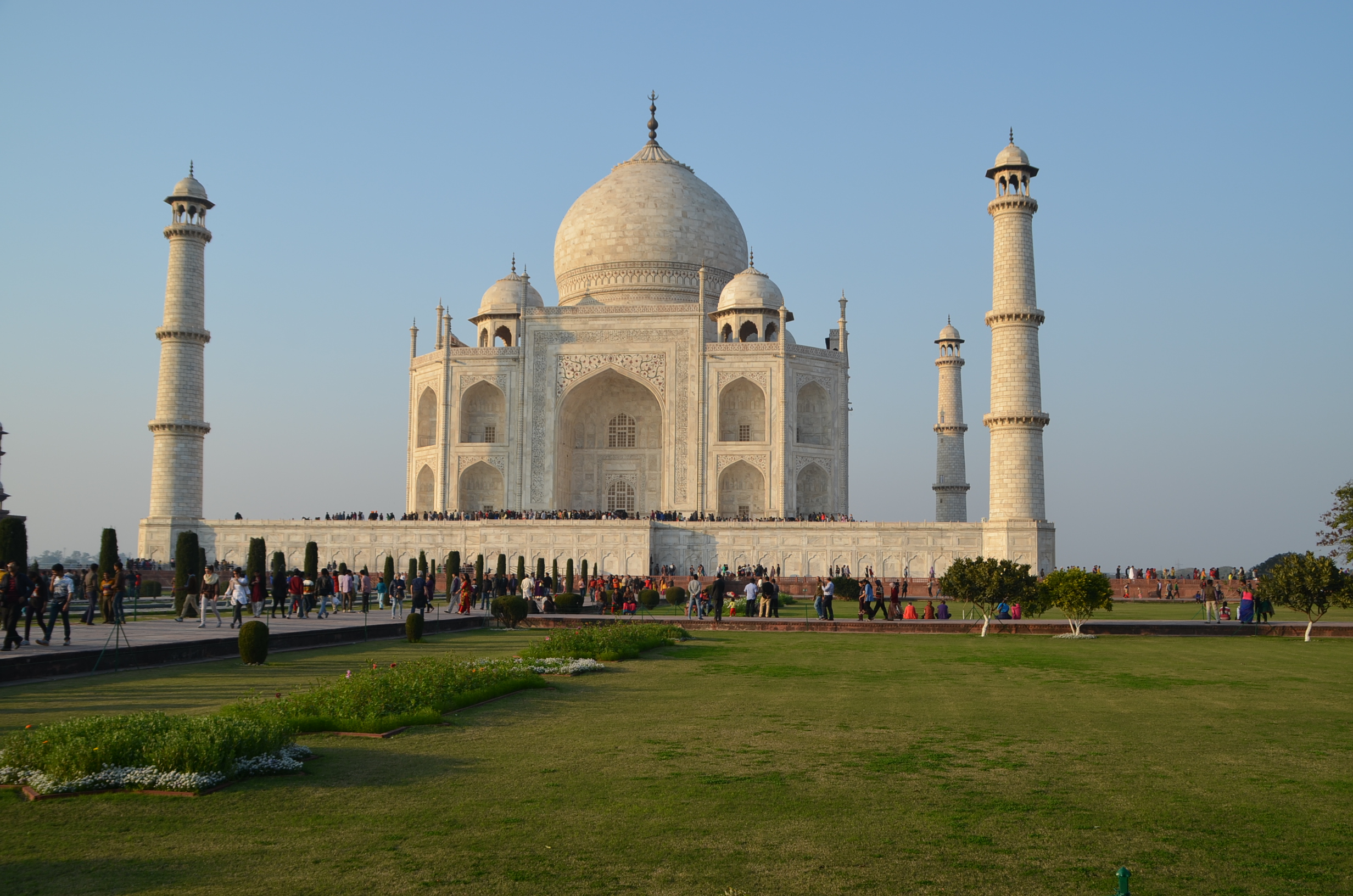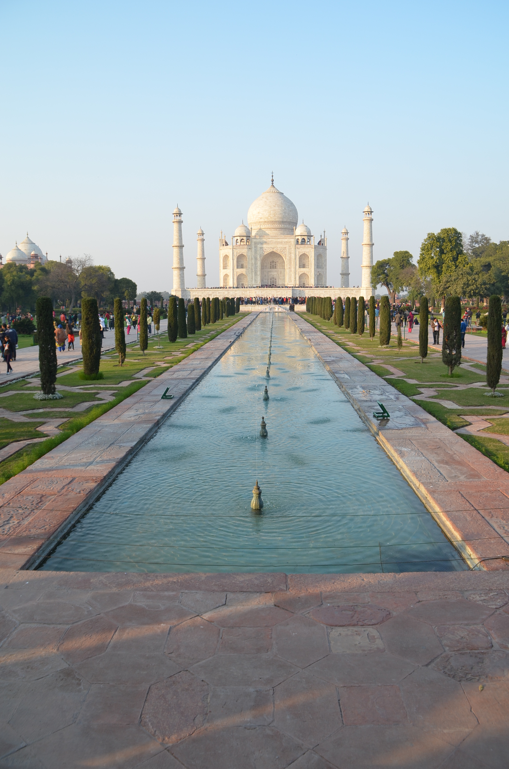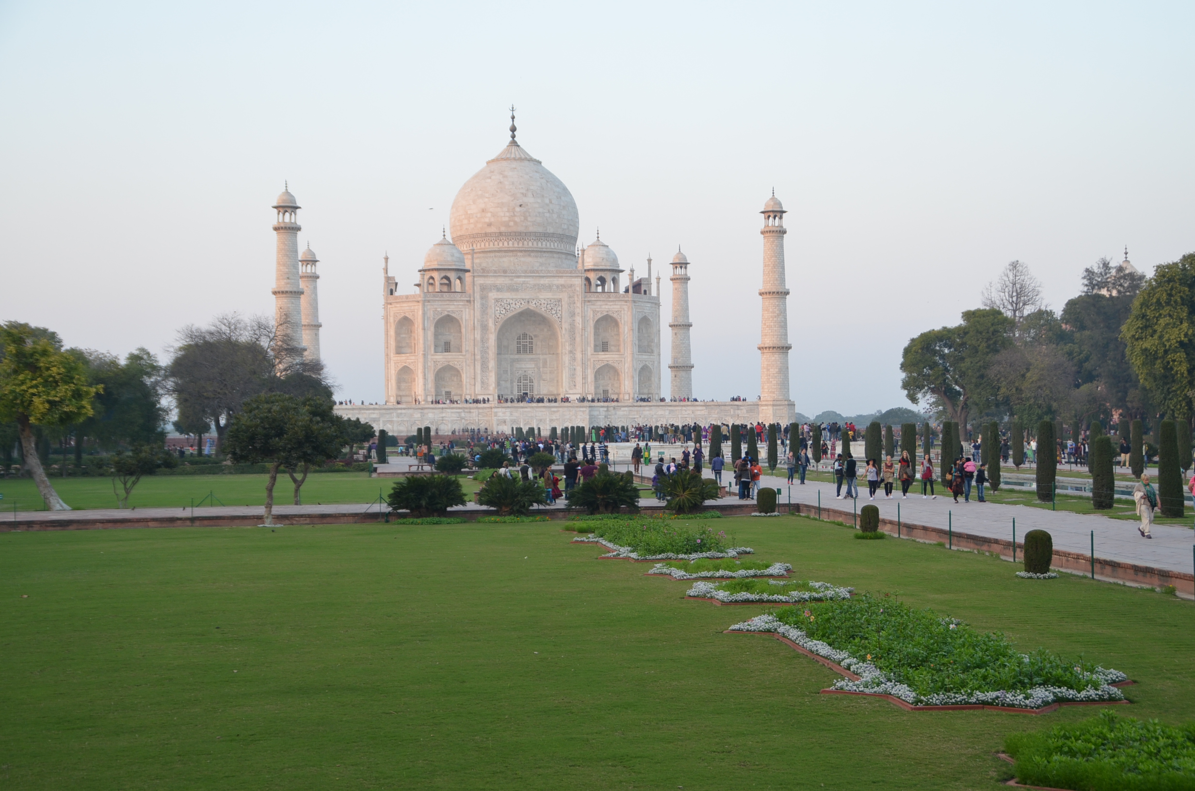 Ao chegar tão logo os portões se abram, o visitante terá duas vantagens. Uma, a óbvia, é evitar as grandes aglomerações de turistas, como já citamos. A outra é ver o espetacular monumento banhado pelo sol da manhã. No começo, ele é quase rosado, depois, conforme a manhã progride e o sol se revela mais brilhante, o Taj Mahal torna-se amarelo e, finalmente, alvo e deslumbrante.