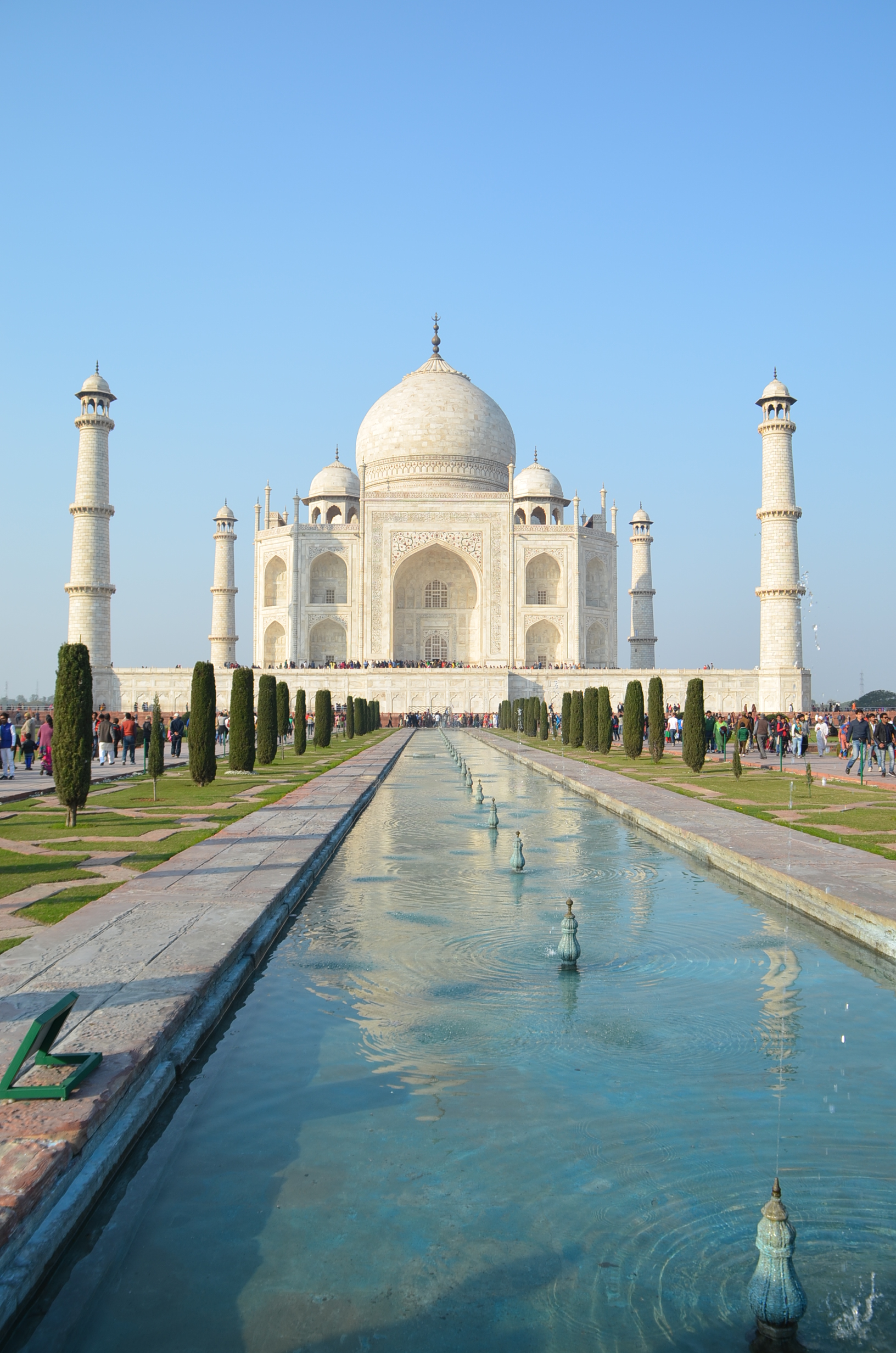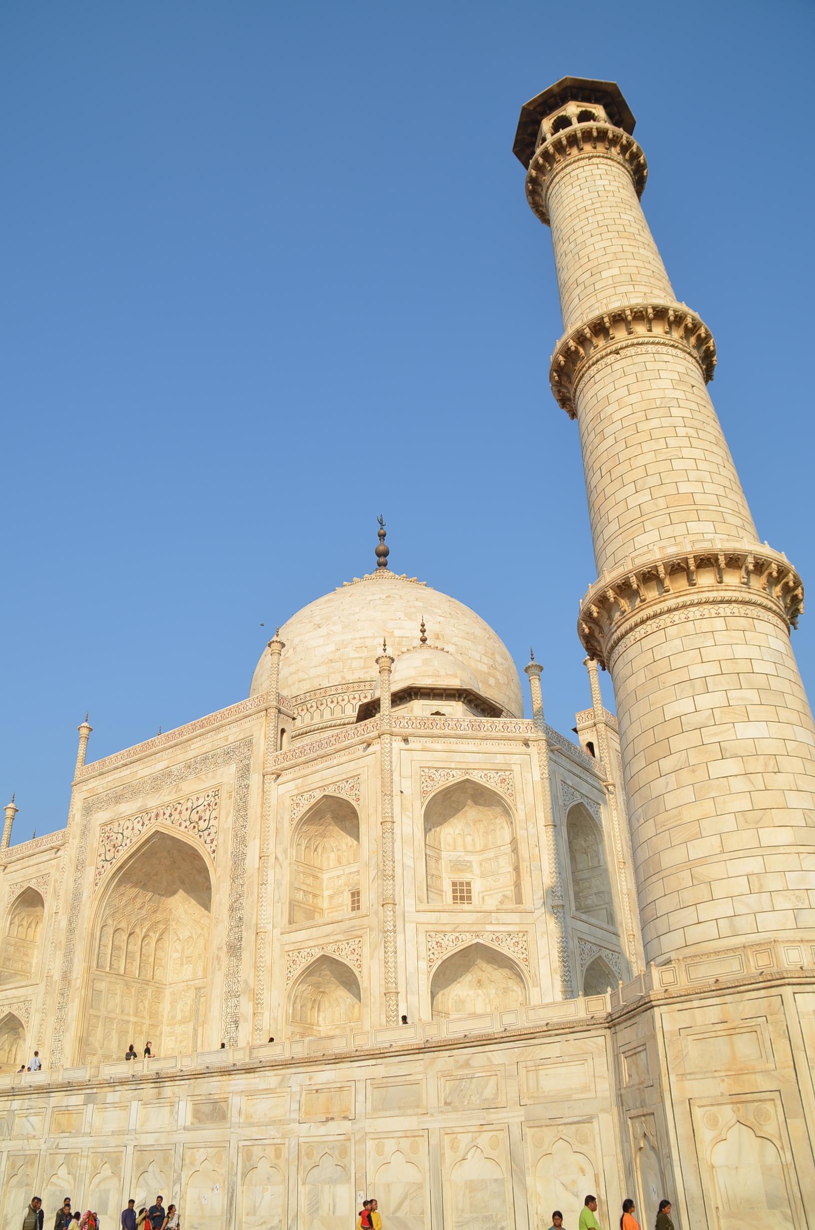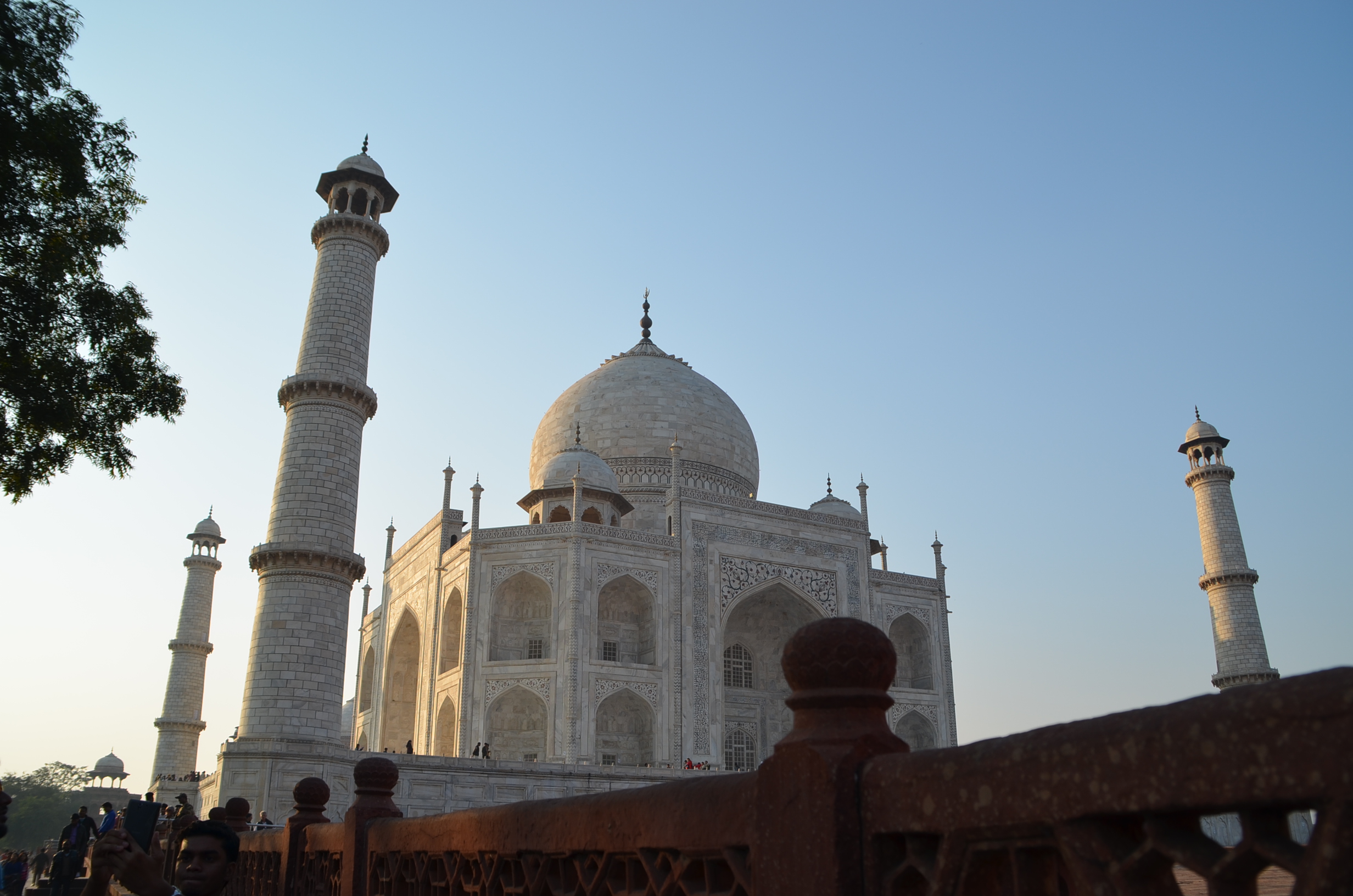 Ao chegar tão logo os portões se abram, o visitante terá duas vantagens. Uma, a óbvia, é evitar as grandes aglomerações de turistas, como já citamos. A outra é ver o espetacular monumento banhado pelo sol da manhã. No começo, ele é quase rosado, depois, conforme a manhã progride e o sol se revela mais brilhante, o Taj Mahal torna-se amarelo e, finalmente, alvo e deslumbrante.