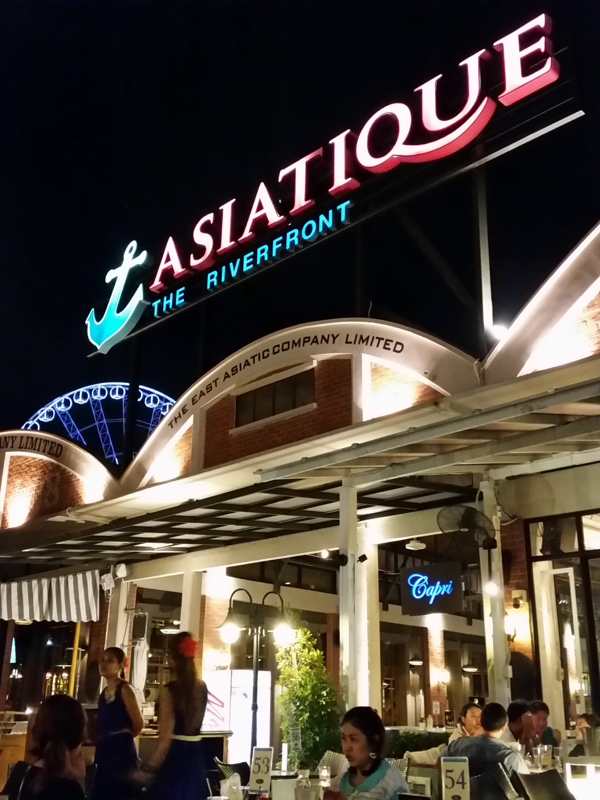 Asiatique, local onde se pode comprar em lojinhas com preços mais caros porém com mais tranquilidade, restaurantes de alta qualidade, uma roda gigante bem bacana, tipo um shopping. Abre todos os dias após 16:00hs e para chegar, deve tomar um tuk tuk ou o SKY TRAIN até a estação de Chao praia, logo abaixo existe um ponto do barco do mercado que é de graça.