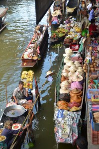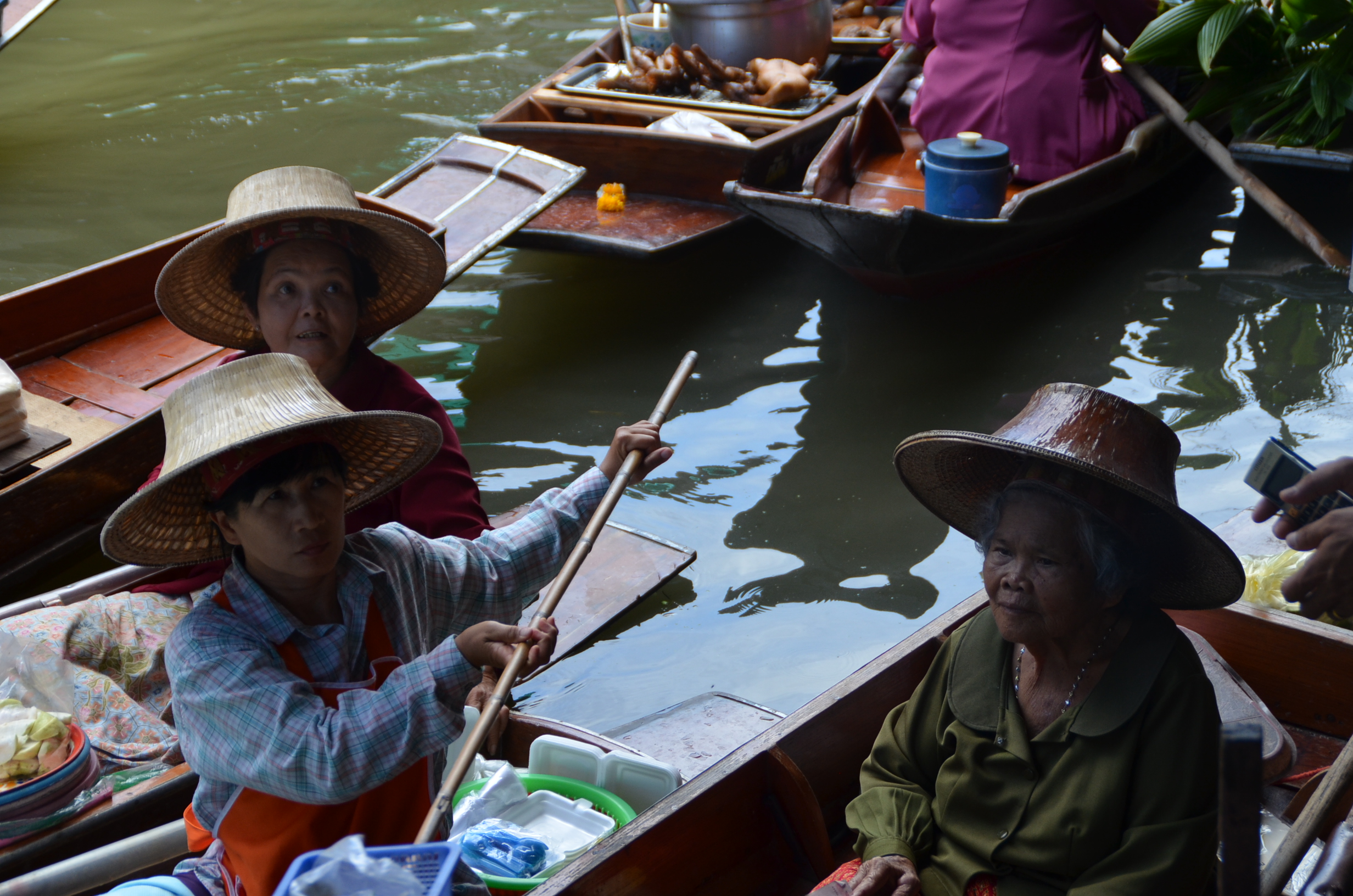 Nas redondezas de BKK existem vários passeios para fazer, dois imperdíveis são: o Floating Market e a colônia de elefantes . Dependendo do trânsito, em uma hora estamos no Floating Market, um mercado que vende de tudo principalmente frutas tropicais que são abundantes na Tailândia, souvenirs locais como estátuas de Buda e artigos de decoração, um passeio fantástico ! Pertinho do mercado flutuante esta a vila dos elefantes onde se faz um passeio bem legal por uma mata curtindo grandalhões que adoram bananas !