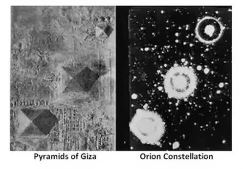 Além destas e outras curiosidades, o cinturão de Orion conhecido como Três Marias estão alinhado exatamente com as pirâmides e formam um exato reflexo.